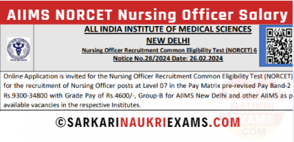 - AIIMS NORCET Nursing Officer Salary 2024 7th Pay Commission