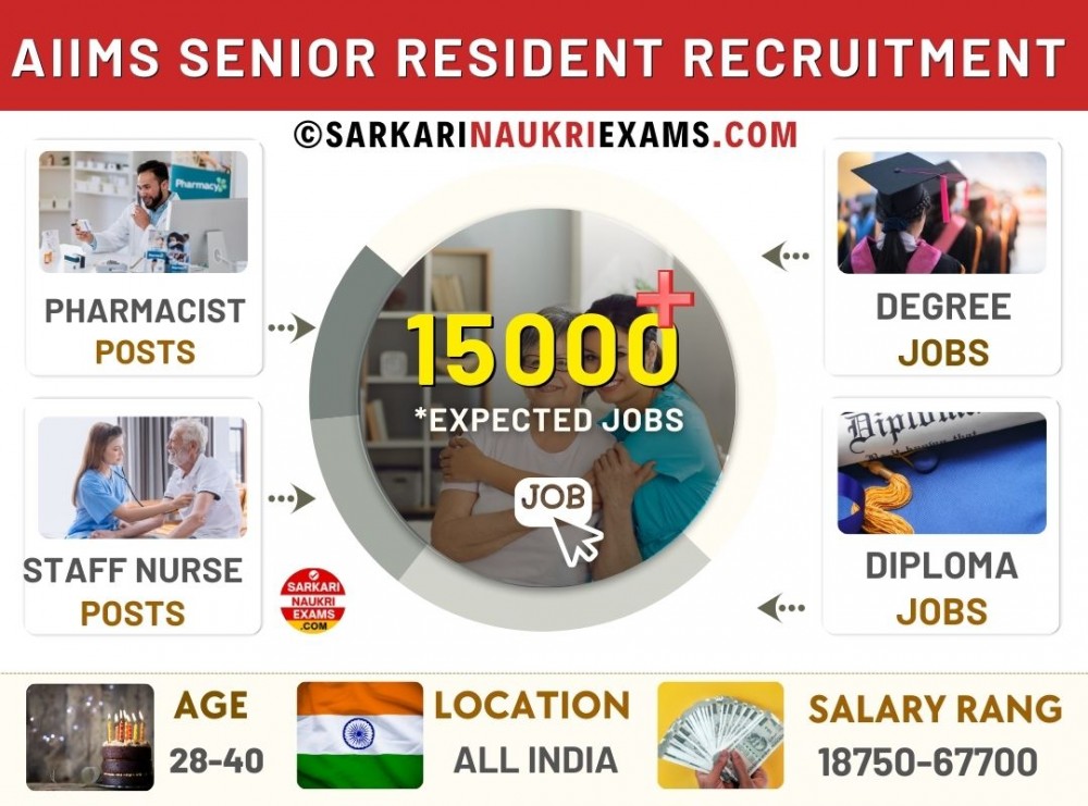 There are 15,000 AIIMS Senior Resident positions in different states, including UP and Jharkhand. The posts are permanent with prospects of pay scale advancements and promotions. The official notification has more details on the recruitment process and application instructions.