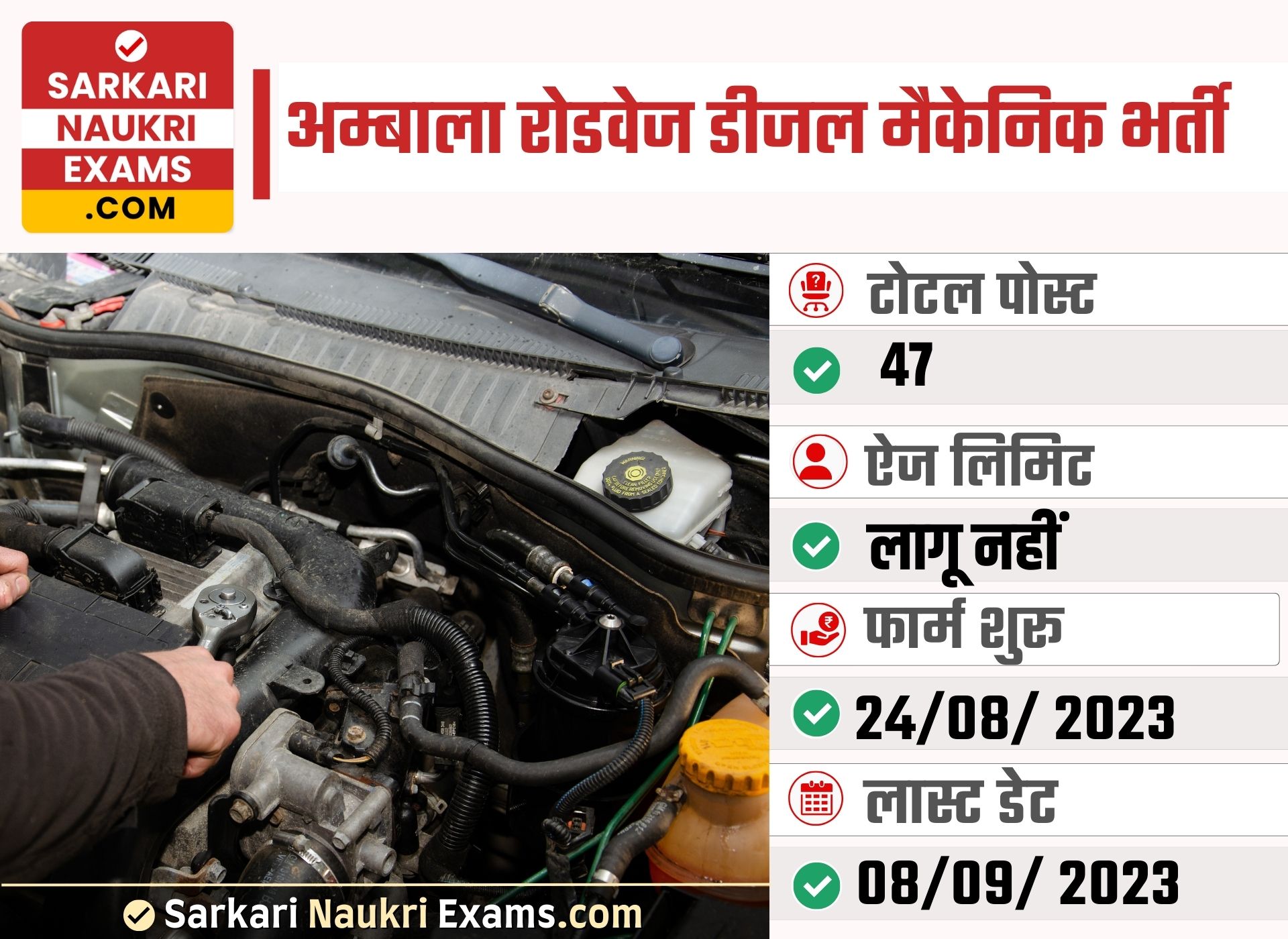 Ambala Roadways Diesel Mechanic Recruitment 2023 | Last Date: 08 Sept Apply Online Form
