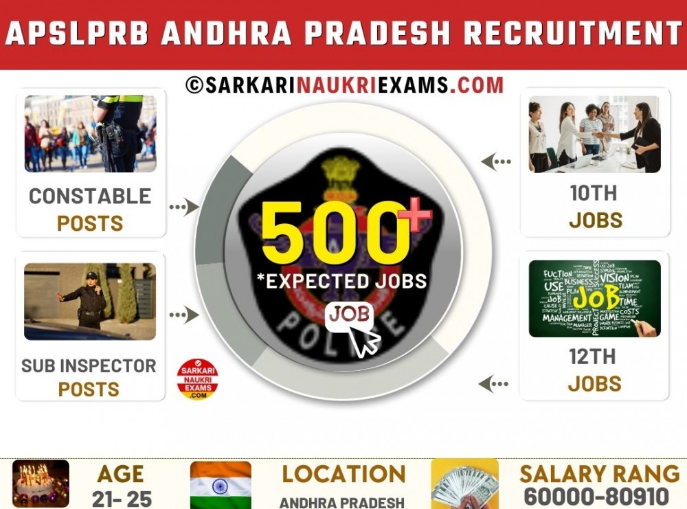 This year, it is expected that more than 500 new vacancies for Andhra Pradesh will be released. These positions will be permanent, with opportunities for periodic salary increases and promotions. The locations for this APSLPRB Sarkari Naukri 2026 (एपीएसएलपीआरबी सरकारी नौकरियां) vary by job nature and are spread across different states and districts. For more details, please refer to the APSLPRB.ap.gov.in Recruitment.