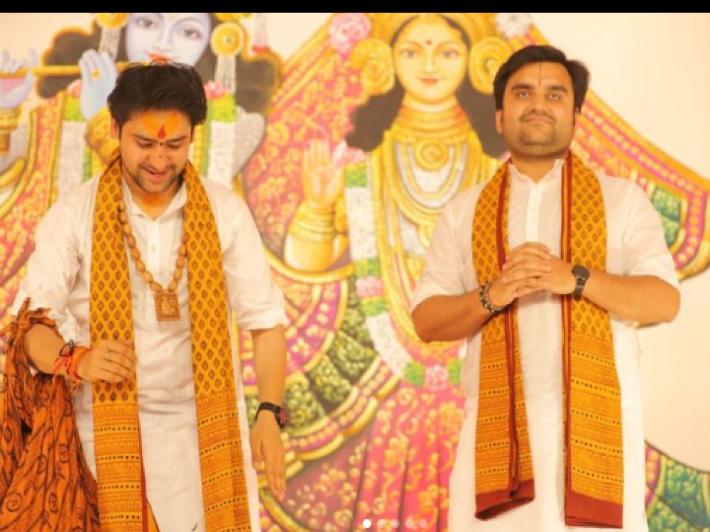 2023: Respected Sarkar meets with ISKCON's Pujyapad Gopal Krishna Goswami Ji Maharaj, accompanied by motivational speaker Shri Vivek Bindra ji and Sanskar TV's Shri Manoj Tyagi ji.