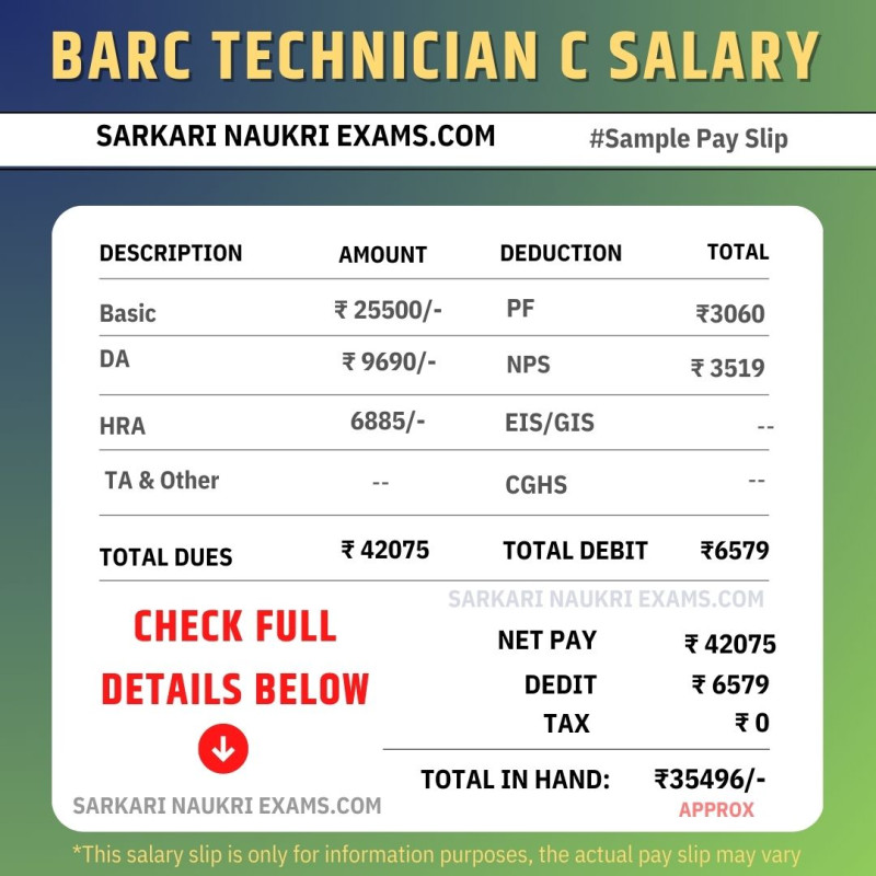 After the successful completion of training, the Stipendiary Trainees category (II) will be considered for the appointment of Technician C (Group 'C')depending on their performance during the period of training. BARC Technician C Salary level is 4. Therefore the monthly salary of a BARC Technician C will be Rs.25500/-.