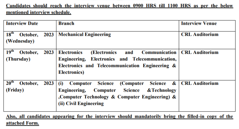 Eligibility Details Civil EnggEducationQualification : BE/B.Tech Trade/Subject : Engineering Mechanical EnggEducationQualification : BE/B.Tech Trade/Subject : Engineering Electronics EnggEducationQualification : BE/B.Tech Trade/Subject : Engineering Computer Science EnggEducationQualification : BE/B.Tech Trade/Subject : Engineering |
