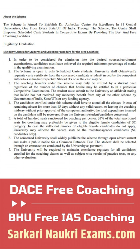DACE Free Coaching UPSC, IAS Form 2022 | BHU