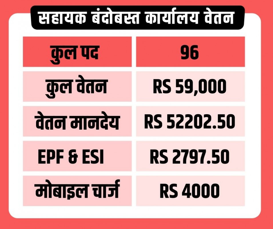 | Assistant Settlement Office (सहायक बंदोबस्त कार्यालय) | Rs 59000/- (Per Month) |
