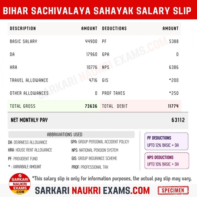 Bihar Sachivalaya Sahayak Salary Slip Basic Pay Gross Salary