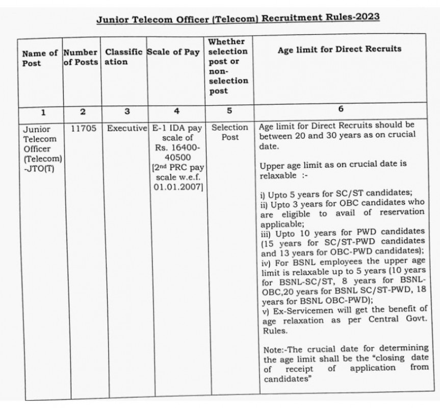 | Junior Telecom Officer (JTO) | To be Notified soon |