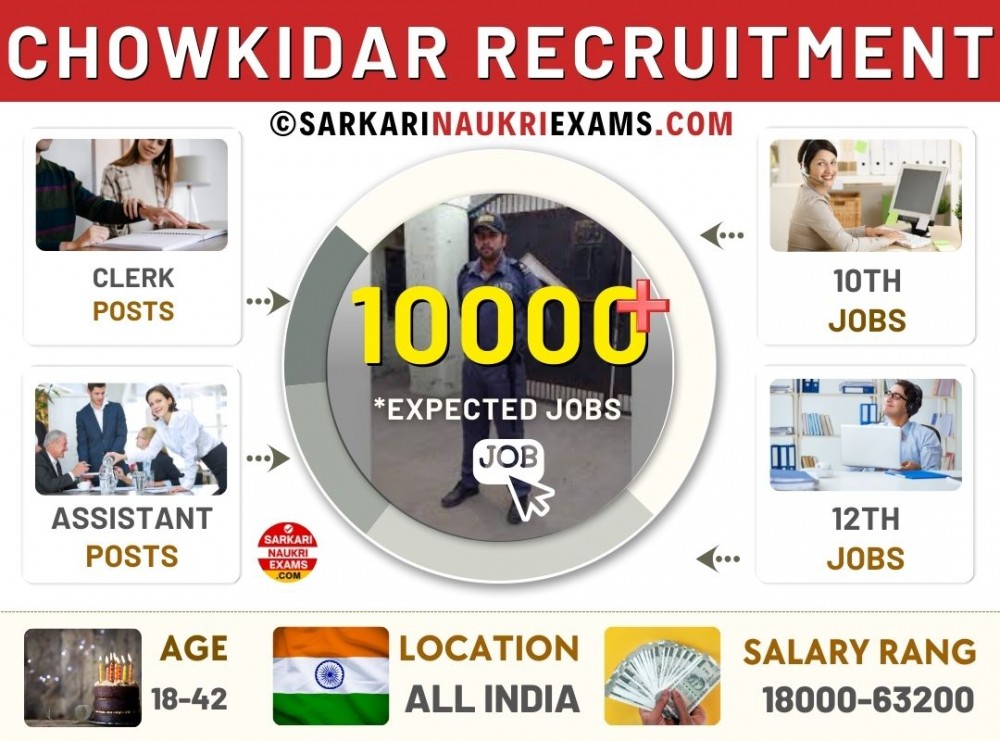 There are 10,000 vacancies for the Chowkidar Job in UP, Jharkhand, and other states. These government job positions will be permanent, accompanied by periodic salary increments and promotions. The locations for the Chowkidar government jobs in 2026 span across India, varying based on the specific nature of the job. For further details regarding the latest Chowkidar Recruitment Jobs (चौकीदार भर्ती नवीनतम नौकरियाँ), Chowkidar Sarkari Naukri, and the application process for the Chowkidar Bharti, please refer to the information provided below.