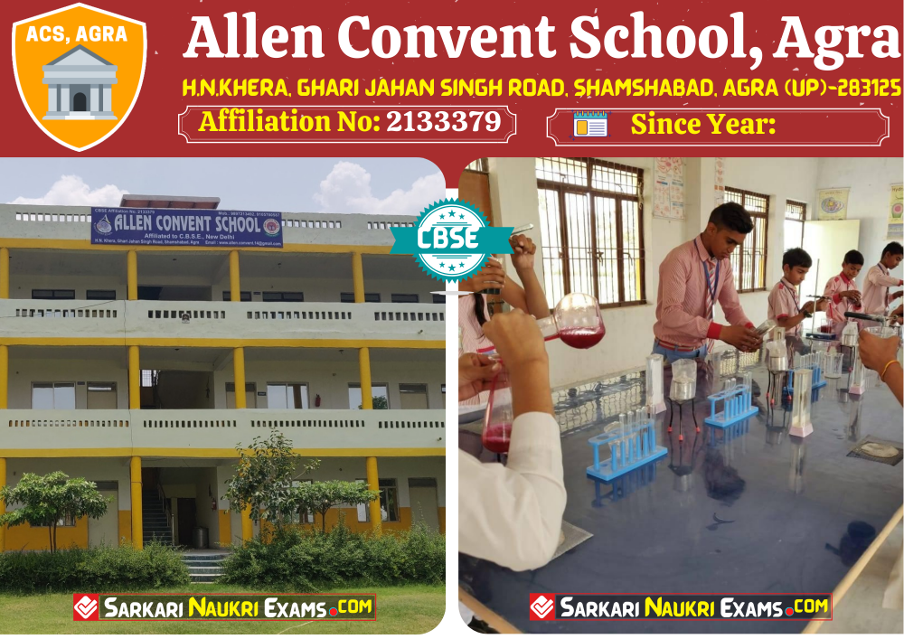 Allen Convent School, Agra (एलन कॉन्वेंट स्कूल, आगरा) , was established in ACS, Agra , is up to class ACS, Agra . Allen Convent School, HN Khera, Jahan Singh Road is a CBSE {Secondary School} Board school in HN Khera, Jahan Singh Road, Agra District. Affilication no of this school is 2133379. Currently, Mrs. Manorama Sharma {एलन कॉन्वेंट स्कूल, आगरा श्रीमती मनोरमा शर्मा} is the Head/Principal of Allen Convent School, HN Khera, Jahan Singh Road .This school has courses Class I, Class II, Class III, Class IV, Class V, Class VI, Class VII, Class VIII, Class IX, Class X, Class XI, Class XII, . Check details of Allen Convent School, Agra (एलन कॉन्वेंट स्कूल, आगरा) Admission Form , Contact Number (E-Mail/Phone Number), Fee Structure, and Latest Official Notice.
