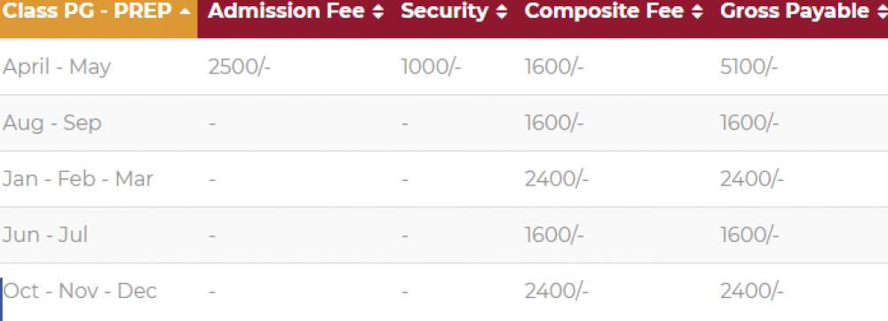 Class PG to Pre-Primary- Fee Session -(Based on Previous Year)