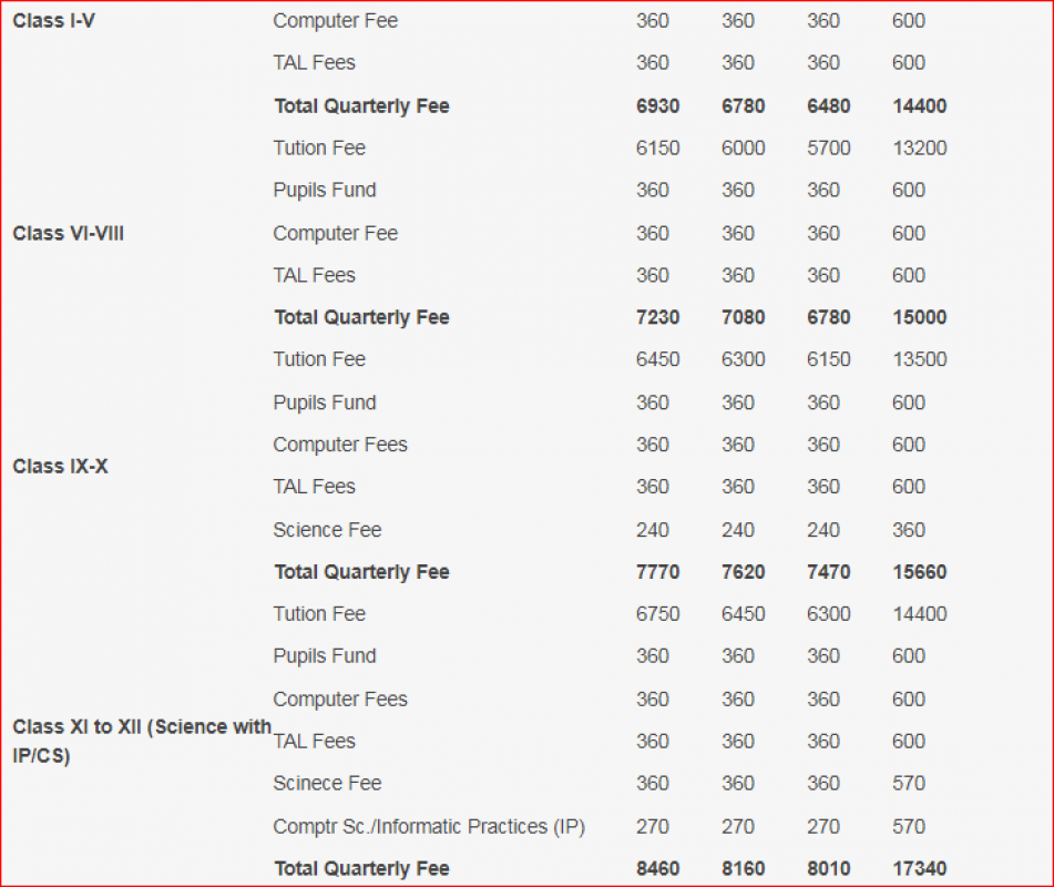 Note: Please contact school or visit official site for updated fee structure for year 2023- 2024.