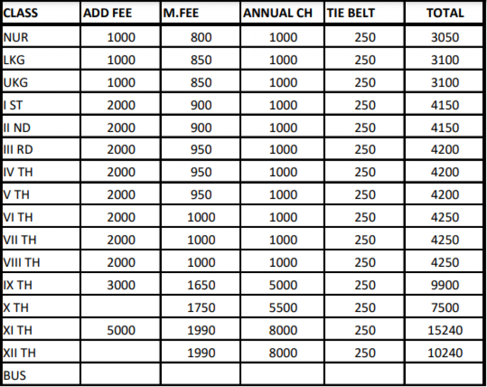 Note: Please contact school or visit official site for updated fee structure for year 2023- 2024.