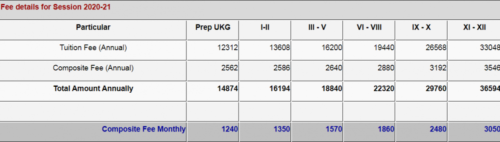 | Tuition fee (Annually) | ₹ 12,312 |