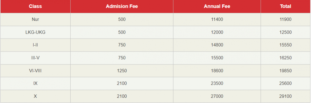 Note: Please contact school or visit official site for updated fee structure for year 2023- 2024.