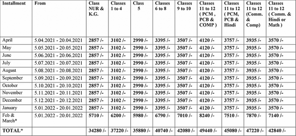 Note: Please contact school or visit official site for updated fee structure for year 2023- 2024.