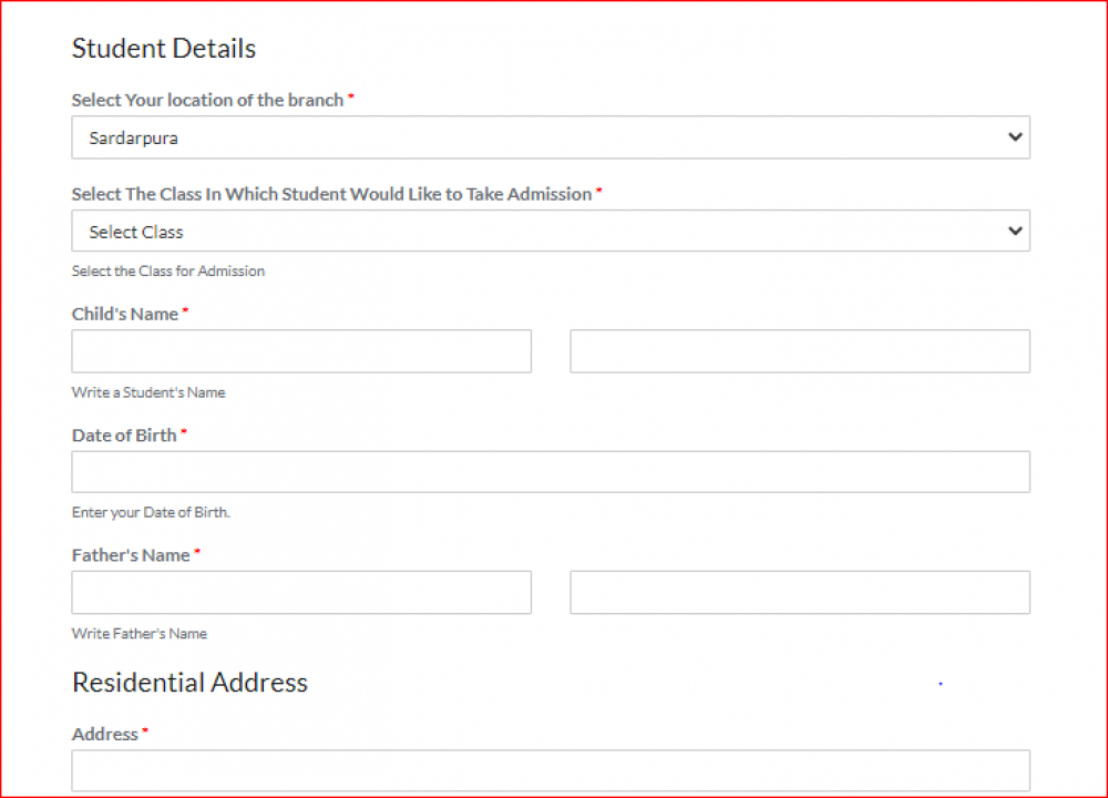 - The parents or guardians of the children should note that there should not be any discrepancy in the date of birth or name of the child while filling the registration form, otherwise no chance will be given to rectify it later.