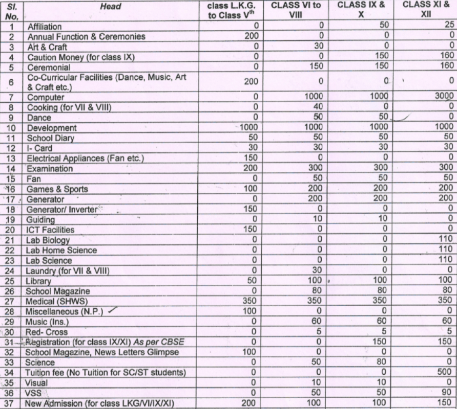 {Central Hindu Girls School Kamachha, Varanasi Fee Structure -(Based on Previous Year)}