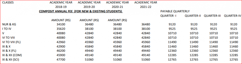 Note: Please contact school or visit official site for updated fee structure for year 2023- 2024.