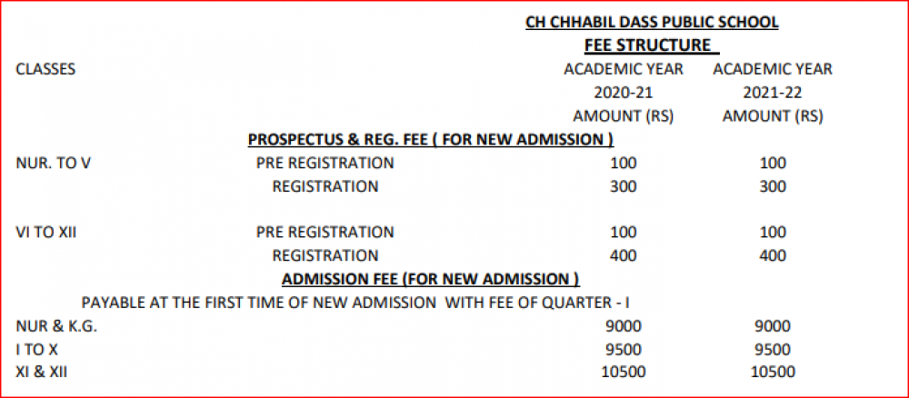 {CH Chhabil Dass Public School, Ghaziabad Fee Structure -(Based on Previous Year)}