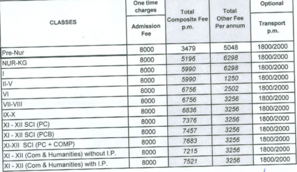 Note:- Admission fee:- Rs.- 8000/- | Other fee (Per Annual):- Rs.- 2502/- | Transport fee (Per Month):- Rs.- 1800/2000/-