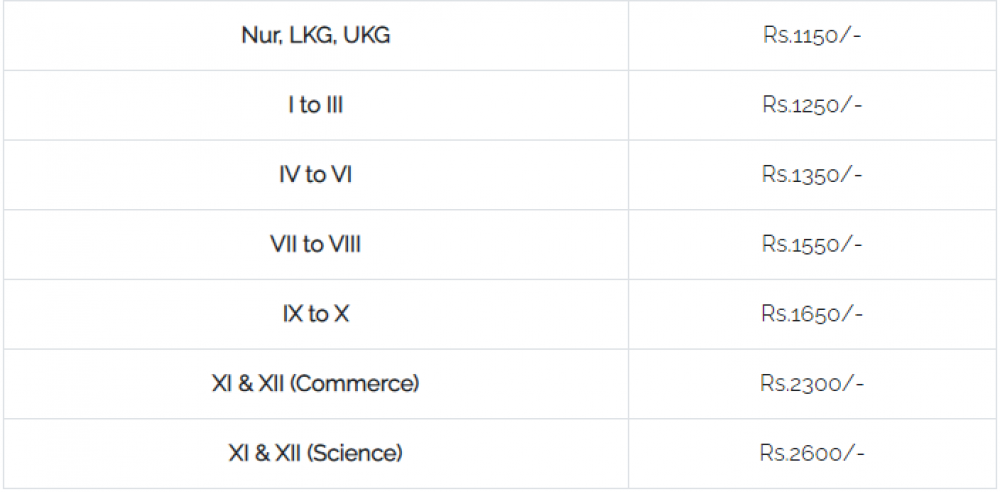 Note: Please contact school or visit official site for updated fee structure for year 2023- 2024.