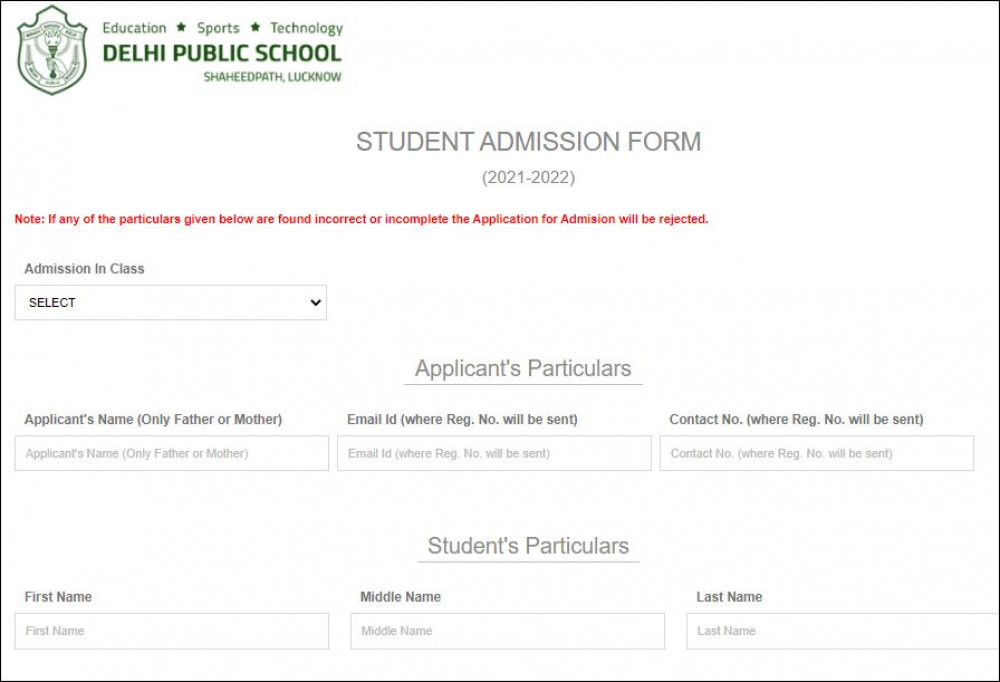 {Delhi Public School, Shaheed Path, Lucknow Admission Form -(Based on Previous Year)}