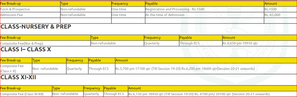 Note: Please contact school or visit official site for updated fee structure for year 2023- 2024.