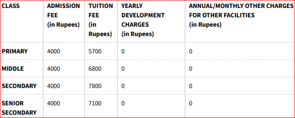 Get fee details about admission, Tuition fee and transort fee and other fee details.
