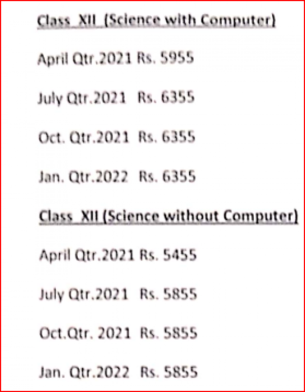 Class XII (Science without Computer)- Fee Session -(Based on Previous Year)