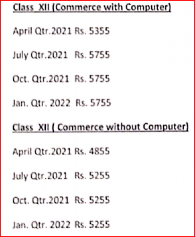 Class XII (Commerce without Computer)- Fee Session -(Based on Previous Year)