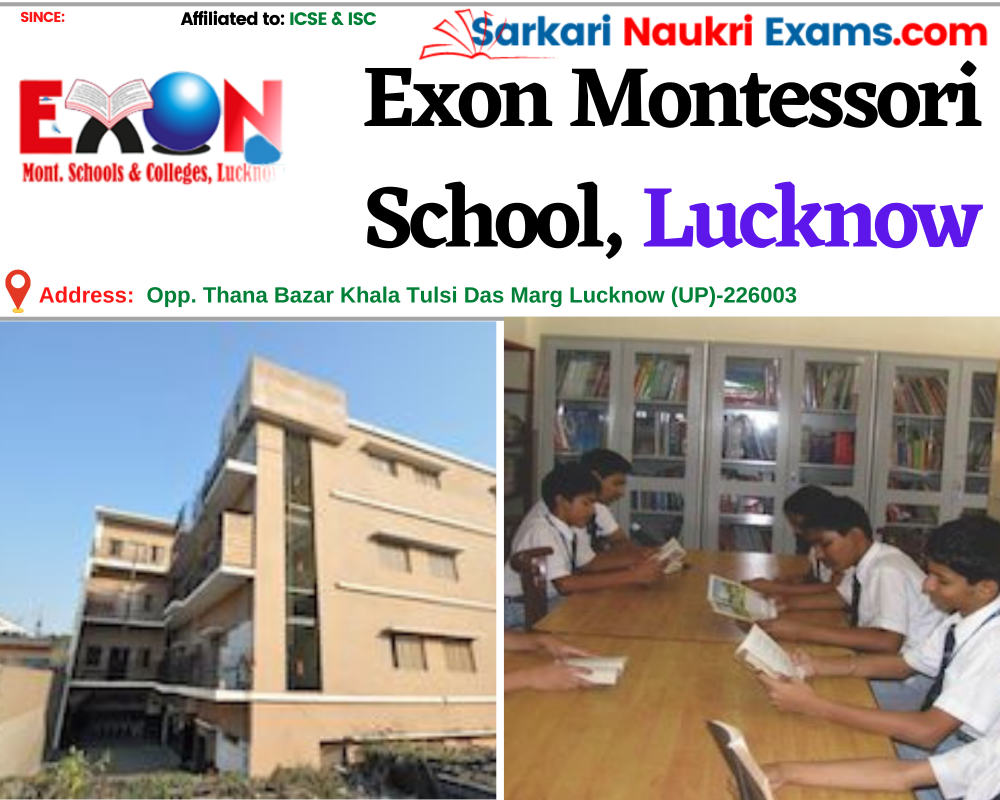 Exon Montessori School, Lucknow (एक्सॉन मॉन्टेसरी स्कूल, लखनऊ) , was established in 1983 EMS, Lucknow , is up to class EMS, Lucknow . Exon Montessori School, Thana Bazar Khala Tulsi Das Marg Lucknow-226003 in Uttar Pradesh is a ICSE & ISC Board school in Tulsi Das Marg, Lucknow District. Affilication no of this school is UP310. Currently, Mrs. Geetanjali Sharma is the Head/Principal of Exon Montessori School, Thana Bazar Khala Tulsi Das Marg Lucknow-226003 in Uttar Pradesh .This school has courses Prep-Nursery, Class I-V, Class VI-VIII, Class IX & X, Class XI & XII, . Check details of Exon Montessori School, Lucknow (एक्सॉन मॉन्टेसरी स्कूल, लखनऊ) Admission Form -(Based on Previous Year), Contact Number (E-Mail/Phone Number), Fee Structure, and Latest Official Notice.