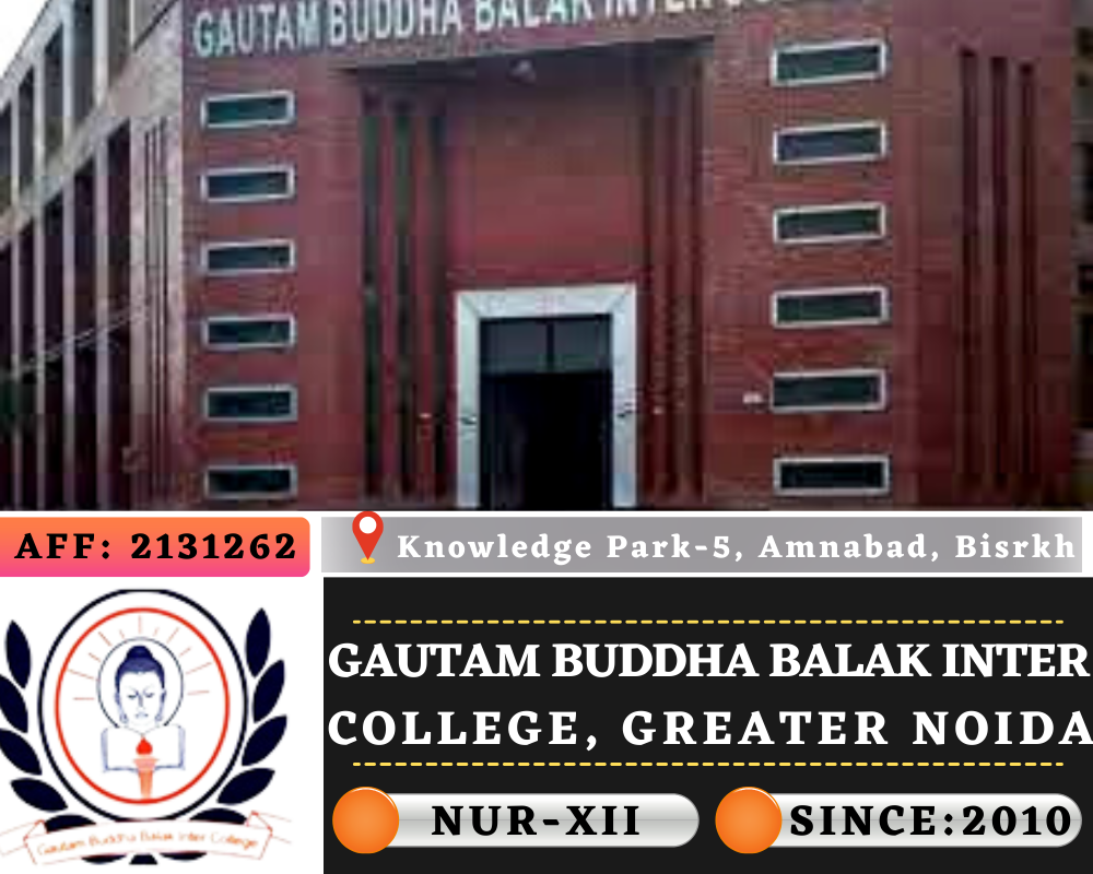 Gautam Buddha Balak Inter College, Greater Noida (UP), गौतम बुद्ध बालक इंटर कॉलेज, ग्रेटर नोएडा (यूपी), was established in 2010 GBBIC, Greater Noida, is up to class GBBIC, Greater Noida. Gautam Buddha Balak Inter College is an English Medium Boys Sr. Sec. Public School, in Gautam Budh Nagar (Noida), is a CBSE (Senior Secondary) Board school in Knowledge Park-5, Amnabad, Bisrkh, Noida District. The affiliation no of this school is 2131262. Currently, Mr. Rajendra Kumar, [श्री राजेंद्र कुमार] is the Head/Principal of Gautam Buddha Balak Inter College is an English Medium Boys Sr. Sec. Public School, in Gautam Budh Nagar (Noida) . This school has courses Class Nur & KG, Class I, Class II, Class III, Class IV, Class V, Class VI, Class VII, Class VIII, Class IX, Class X, Class XI, Class XII, Check details of Gautam Buddha Balak Inter College, Greater Noida (UP), गौतम बुद्ध बालक इंटर कॉलेज, ग्रेटर नोएडा (यूपी) Admission Form -(Based on Previous Year), Contact Number (E-Mail/Phone Number), Fee Structure, and Latest Official Notice.
