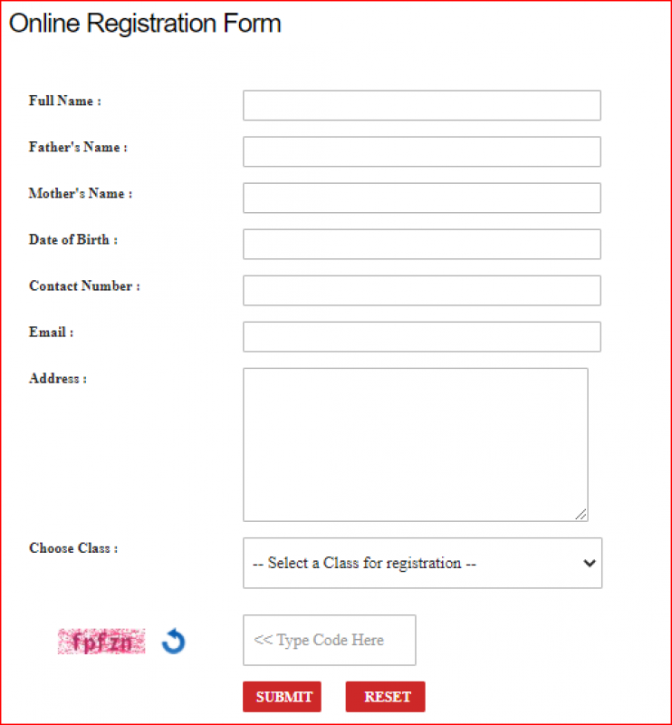 Online Registration form