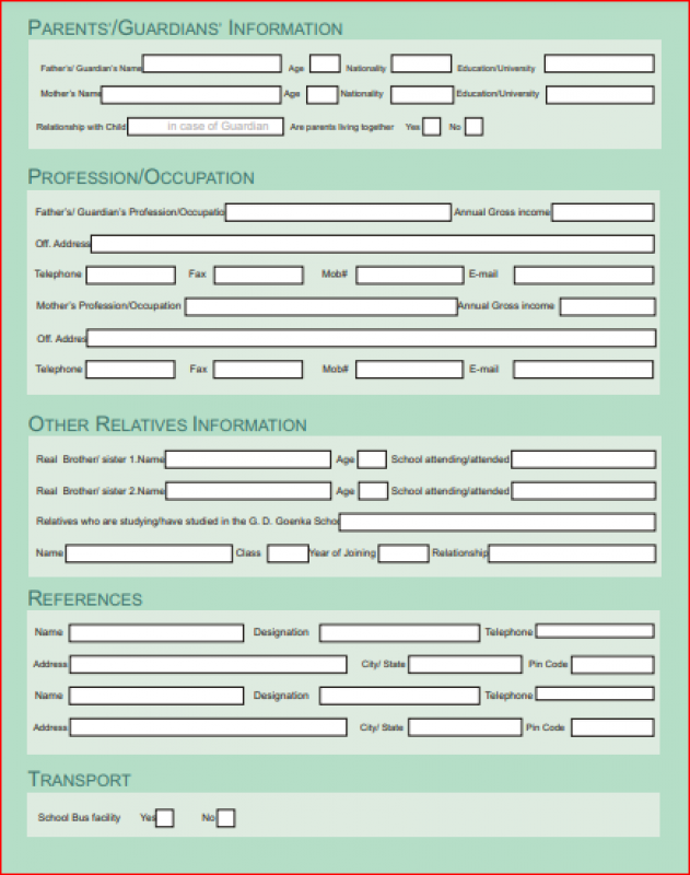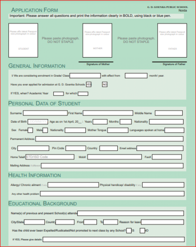 {G. D. Goenka Public School, Greater Noida, Admission form -(Based on Previous Year)}