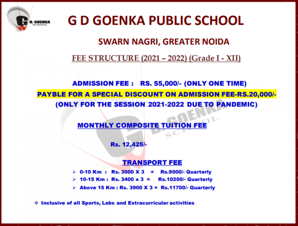 Fee Structure- G. D. Goenka Public School, Greater Noida (UP)