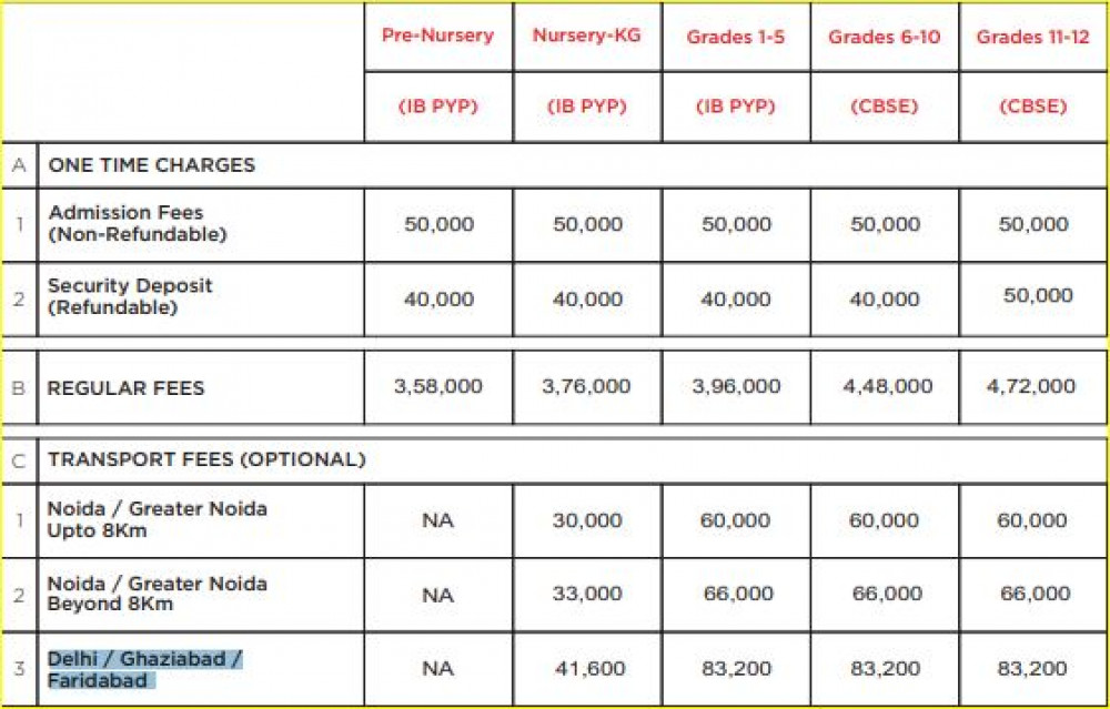 Security fee (Non-Refundable), Class Pre- Nur to X:- Rs.- 40,000/- | Class XI & XII:- Rs.-50,000/-