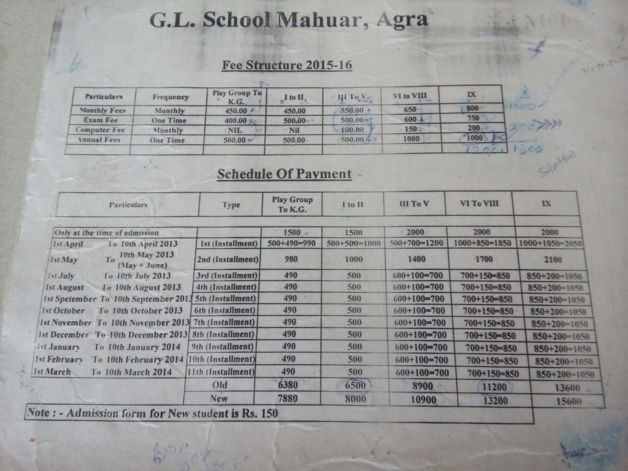 Note: Please contact school or visit official site for updated fee structure for year 2023- 2024.