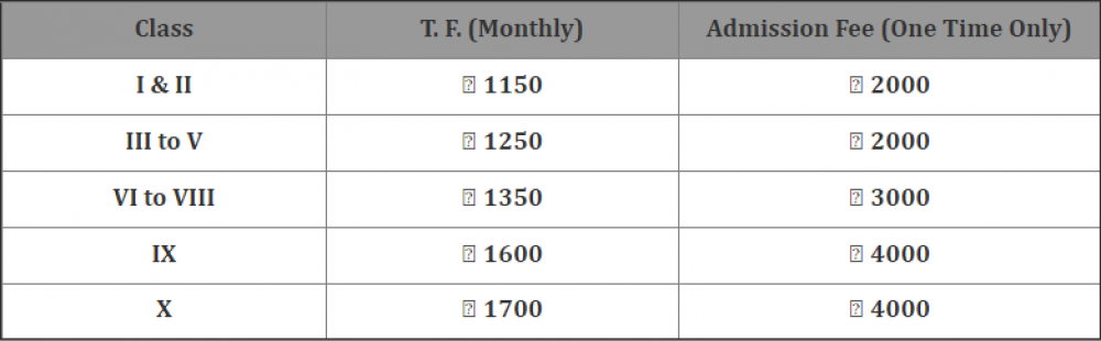 Get fee details about admission, Tuition fee and transort fee and other fee details.