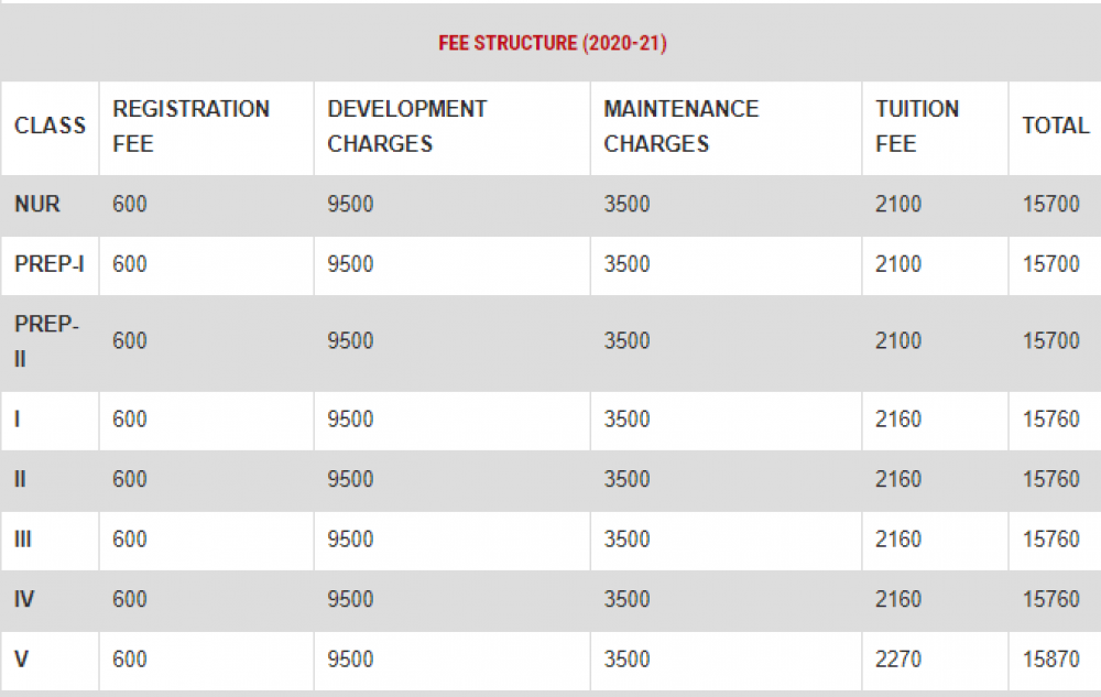 Note: Please contact school or visit official site for updated fee structure for year 2023- 2024.