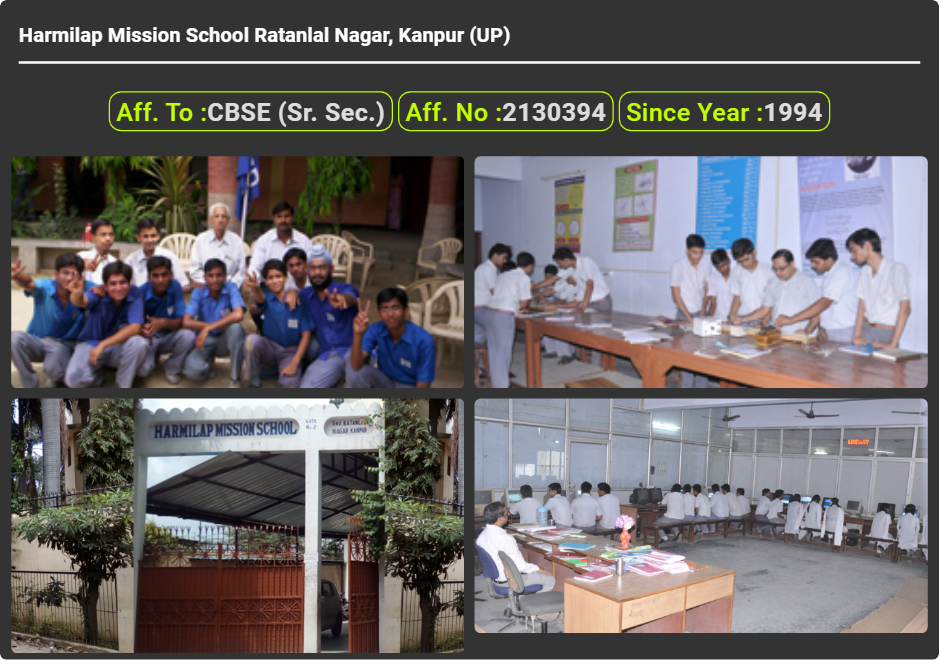 Harmilap Mission School Ratanlal Nagar, Kanpur (UP), was established in 1994. Harmilap Mission School Ratanlal Nagar, Kanpur (UP), is up to class Harmilap Mission School Ratanlal Nagar, Kanpur (UP). Harmilap Mission School Ratanlal Nagar, Kanpur (UP) is a CBSE (Sr. Sec.) Board school in Ratan Lal Nagar, Kanpur Nagar District. Affiliation no of this school is 2130394. Currently, Ms. Meenu Gosain is the Head/Principal of Harmilap Mission School Ratanlal Nagar, Kanpur (UP).This school has courses Pre Nursery, Class 1st (I), Class 2nd(II), Class 3rd (III), Class 4th (IV), Class 5th (V), Class 6th (VI), Class 7th (VII), Class 8th (VIII), Class 9th (IX), Class 10th (X), Class 11th (XI) & Class 12th (XII). Check details of Harmilap Mission School Ratanlal Nagar, Kanpur (UP) Admission Form -(Based on Previous Year), Contact Number (E-Mail/Phone Number), Fee Structure, and Latest Official Notice.