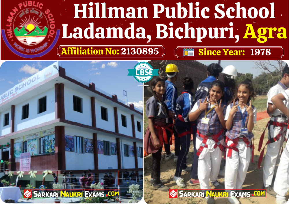 Hillman Public School, Agra (हिलमैन पब्लिक स्कूल, आगरा) , was established in 1978 HMPS, Agra , is up to class HMPS, Agra . Hillman Public School, Ladamda, Agra is a CBSE {Senior Secondary} Board school in Ladamda, Bichpuri, Agra District. Affilication no of this school is 2130895. Currently, Mrs. Anshupriya {श्रीमती अंशुप्रिया} is the Head/Principal of Hillman Public School, Ladamda, Agra .This school has courses Nur. & UKG , Class I, Class II, Class III, Class IV , Class V, Class VI, Class VII & VII, Class IX , Class X, Class XI {For Science & Comm. Stream}, Class XII {For Science Stream}, Class XII {For Comm. Stream}, . Check details of Hillman Public School, Agra (हिलमैन पब्लिक स्कूल, आगरा) Admission Form , Contact Number (E-Mail/Phone Number), Fee Structure, and Latest Official Notice.