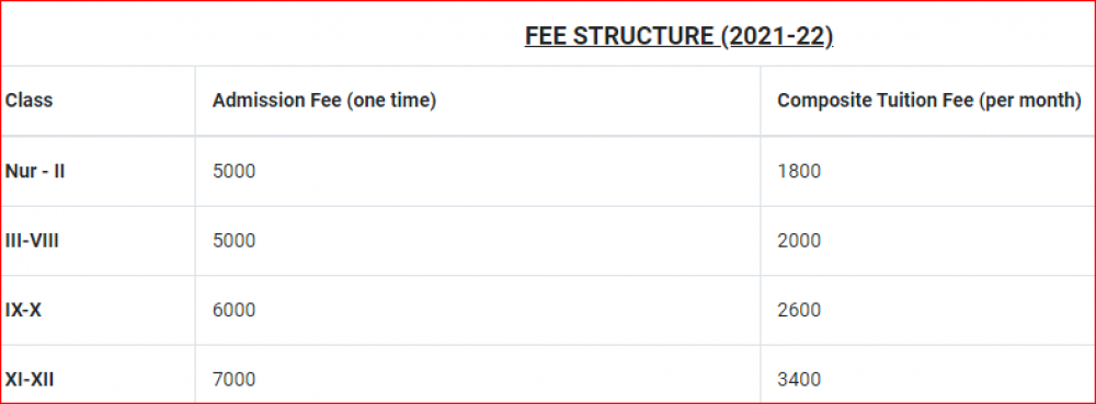 Note: Please contact school or visit official site for updated fee structure for year 2023- 2024.