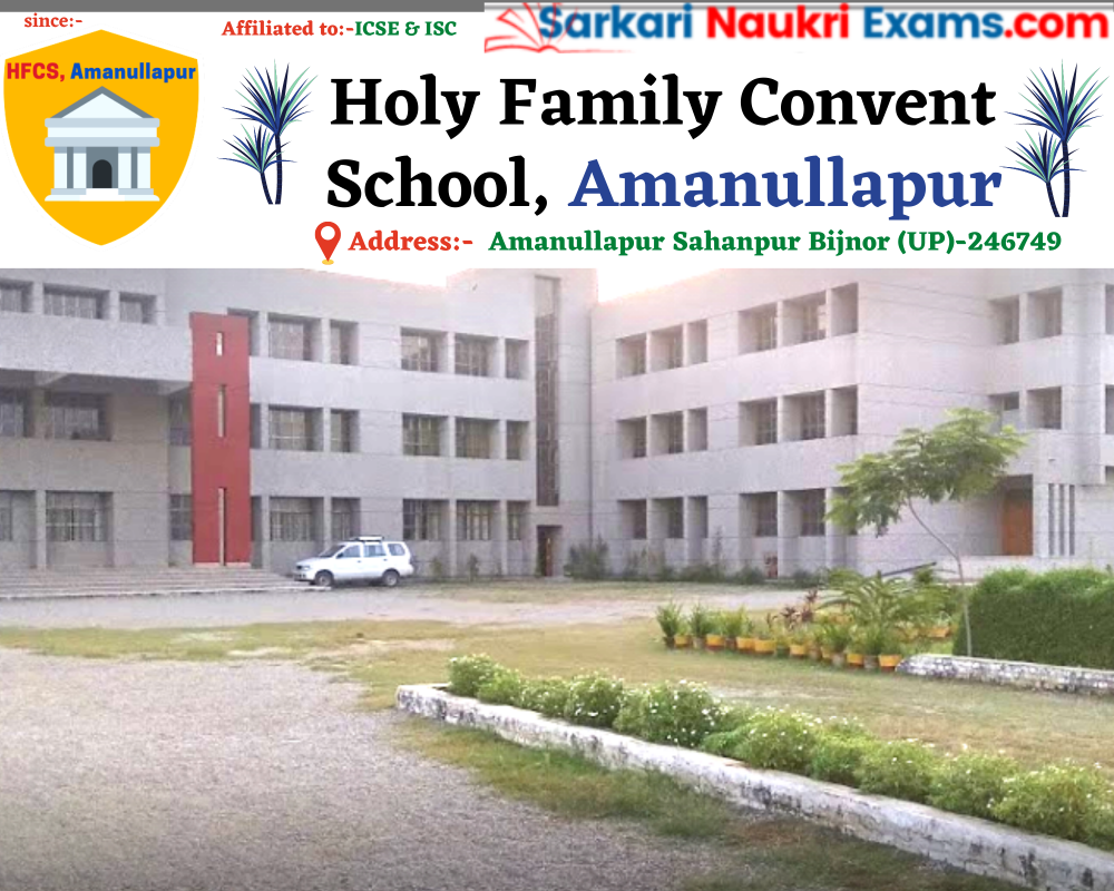 Holy Family Convent School, Amanullapur(होली फैमिली कॉन्वेंट स्कूल, अमानुल्लापुर), was established in HFCS, Amanullapur, Bijnor, is up to class HFCS, Amanullapur, Bijnor. Holy Family Convent School, Amanullapur is an ICSE & ISC Board school in Najibabad, Haridwar Road, Bijnor District. The affiliation no of this school is UP420. Currently, Sr. K.D. Sheeja is the Head/Principal of Holy Family Convent School, Amanullapur. This school has courses P.G. & LKG, Class I, Class II, Class III, Class IV, Class V, Class VI, Class VII, Class VIII, Class IX, Class X, Class XI, Class XII. Check details of Holy Family Convent School, Amanullapur(होली फैमिली कॉन्वेंट स्कूल, अमानुल्लापुर) Admission Form , Contact Number (E-Mail/Phone Number), Fee Structure, and Latest Official Notice.