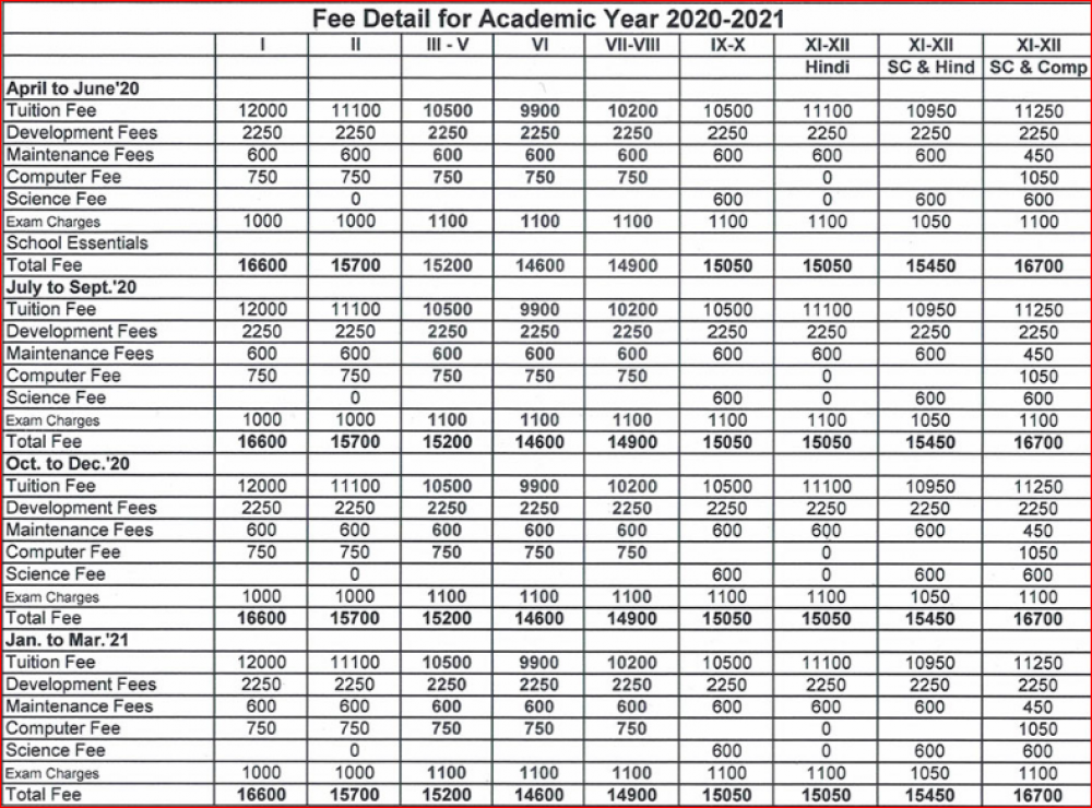 | Science Fee | ₹ 600 |