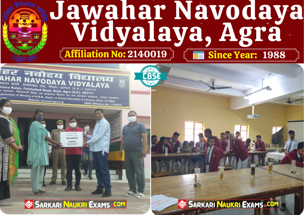 Jawahar Navodaya Vidyalaya, Agra (जवाहर नवोदय विद्यालय, आगरा) , was established in 1988 JNV, Agra , is up to class JNV, Agra . Navodaya Vidyalaya Samiti, Agra is a CBSE{Senior Secondary} Board school in Kolara, Kalan, Agra District. Affilication no of this school is 2140019. Currently, Mr.Ramveer Singh {श्री रामवीर सिंह} is the Head/Principal of Navodaya Vidyalaya Samiti, Agra .This school has courses Class VI, Class VII, Class VIII, Class IX, Class X, Class XI, Class XII, . Check details of Jawahar Navodaya Vidyalaya, Agra (जवाहर नवोदय विद्यालय, आगरा) Admission Form , Contact Number (E-Mail/Phone Number), Fee Structure, and Latest Official Notice.