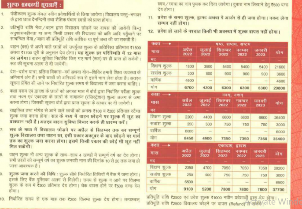 Note: Please contact school or visit official site for updated fee structure for year 2023- 2024.
