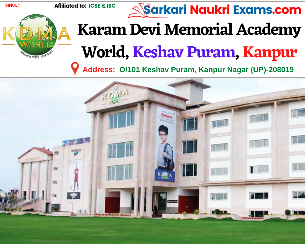 Karam Devi Memorial Academy World, Keshav Puram, Kanpur (करम देवी मेमोरियल एकेडमी वर्ल्ड, केशव पुरम, कानपुर) , was established in KDMA, Keshav Puram, Kanpur , is up to class KDMA, Keshav Puram, Kanpur . Karam Devi Memorial Academy World, Kanpur-208019 In Uttar Pradesh is a ICSE & ISC Board school in O/101 Keshav Puram, Kanpur District. Affilication no of this school is UP336. Currently, Mrs. SUPRIYA RAJA is the Head/Principal of Karam Devi Memorial Academy World, Kanpur-208019 In Uttar Pradesh .This school has courses L.K.G. & U.K.G., Class I, Class II, Class III, Class IV, Class V, Class VI, Class VII, Class VIII, Class IX, Class X, Class XI, Class XII, . Check details of Karam Devi Memorial Academy World, Keshav Puram, Kanpur (करम देवी मेमोरियल एकेडमी वर्ल्ड, केशव पुरम, कानपुर) Admission Form -(Based on Previous Year), Contact Number (E-Mail/Phone Number), Fee Structure, and Latest Official Notice.