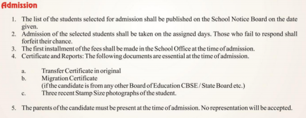 - At the time of admission, both the parents of the student have to be present, so that they can be discussed about anything.