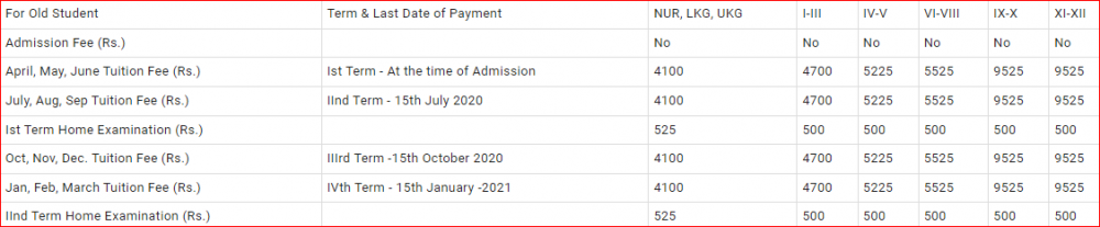 Note: Please contact school or visit official site for updated fee structure for year 2023- 2024.