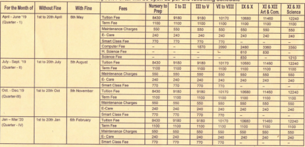 1. This fee is given according to the session 2019 to 2020.